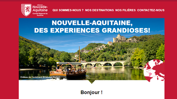 Tous les trois mois, le CRT Nouvelle-Aquitaine diffuse une newsletter en 6 langues (français, anglais, allemand, néerlandais, espagnol et japonais) afin de maintenir son lien précieux avec les professionnels du tourisme français et étrangers.
