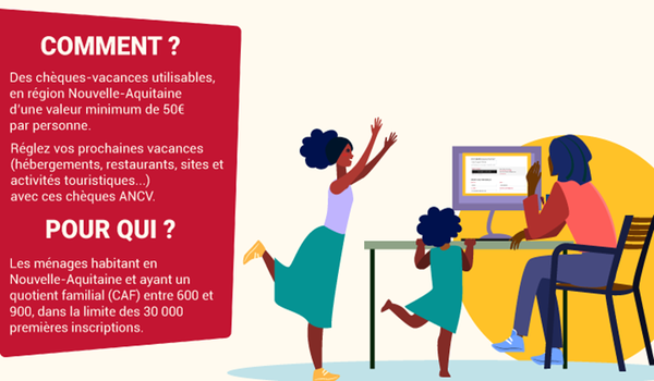 « Ce dispositif vise, d’une part, à accompagner les foyers les plus impactés par la crise sociale et leur permettre l’accès aux vacances et aux loisirs, et d’autre part, à soutenir la demande en matière touristique, d’hôtellerie et de restauration. Nous voulons être la 1ère destination du tourisme durable, nous sommes aussi une région solidaire ! » insistaient Alain Rousset, président du Conseil régional de Nouvelle-Aquitaine, et Sandrine Derville, vice-présidente en charge du tourisme, lors du lancement de cette mesure au début de l’été, au sein d’un vaste plan de relance économique.