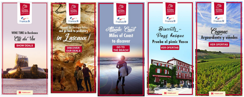 Début juillet, une deuxième campagne digitale grand public a été déployée avec le groupe Expedia, l’une des deux agences en ligne (OTA) les plus importantes au monde, propriétaire de la marque Hotels.com. Cette campagne digitale (bannières internet sur sites externes en lien avec les attentes de la cible et stratégie réseaux sociaux) couvre l’ensemble de l’automne 2019 sur les marchés américain, anglais et espagnol. L’objectif est de développer la notoriété des destinations sur ces marchés et d’augmenter les réservations de voyages (vols et hébergements) sur nos territoires.